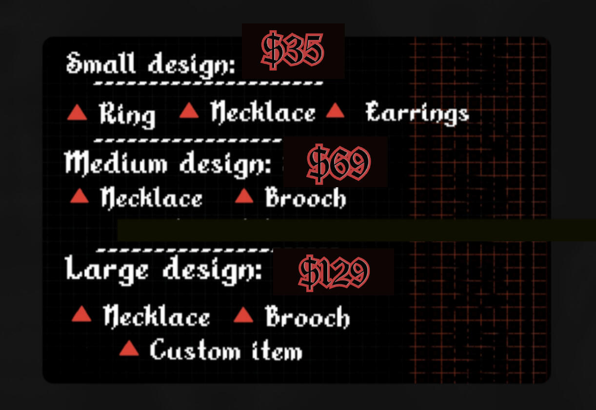 Why hello, you made it! You will find info regarding commissions for jewelry here :)